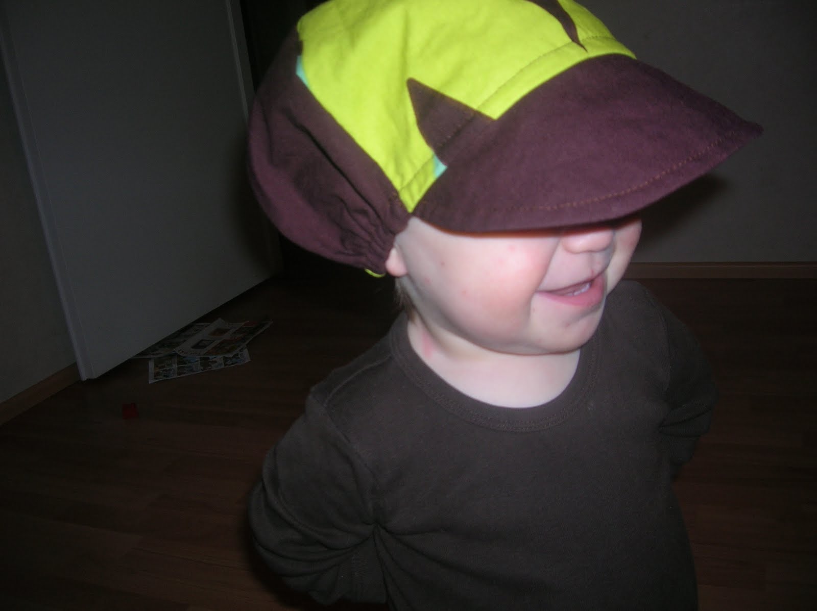 Tällaisilla väreillä sitten syntyi kaksosille tällaiset "mikki hiiri" pipot tai tässä tapauksessa "minni hiiri" pipot ( vaikka minusta nuo on kyllä silti enemmän apinan näköisiä :D ) oli tarkoitus tehdä vaaleanpunaiset tai pinkit mutta kangasta en löytänyt kätköistäni niin paljoa että olis kahteen pipoon riittänyt.